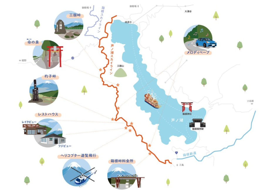 ターンパイク箱根周辺の観光エリア、伊豆半島まで含めると観光名所だらけです!