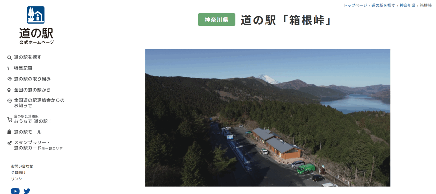「道の駅・箱根峠」は平成7年にオープンした県内最初の「道の駅」です。国道1号の静岡県との県境に位置し、芦ノ湖や駒ヶ岳をはじめとする箱根の山々、そして天気のよい日には富士山まで展望できる場所にあります。売店や軽食コーナー、展望台があるほか、観光情報コーナーも併設しているので箱根の観光レクリエーションの交通・情報拠点として便利ですよ。